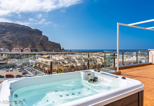 Die Ferienwohnung in Mogán verfügt über 2 Schlafzimmer und hat eine Kapazität für 4 Person(en). Die bequeme und moderne Unterkunft verfügt über 160 m². Die Unterkunft befindet sich 0 m vom Supermarkt entfernt, 0 m vom , 39 m vom "Gran Canaria Airport", 150 m vom zum Sandstrand "Playa de Mogan", 13 km vom Golfplatz "Salobre Golf", 39 km vom Flughafen "Gran Canaria Airport", in einer ruhigen Lage und am Meer. Die Unterkunft verfügt über Gartenmöbel, eine Terrasse, eine Waschmaschine, ein Internetanschluss (WLAN), ein Föhn, ein Balkon, ein Whirlpool, eine Zentralheizung, eine Klimaanlage, eine Garage auf dem Grundstück, ein Fernsehgerät, Satelliten-TV (in den folgenden Sprache(n): Spanisch, Englisch, Deutsch, Holländisch, Französisch). Die Offene Küche ist ausgestattet in einen Kühlschrank, eine Mikrowelle, ein Backofen, Gefrierschrank, eine Spülmaschine, Geschirr/Besteck, Kochutensilien, eine Kaffeemaschine, einen Toaster und einen Wasserkocher.